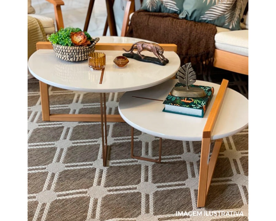 Mesa Rudnick centro menor Linnea amendoa/off white brilho/cobre 1361986621